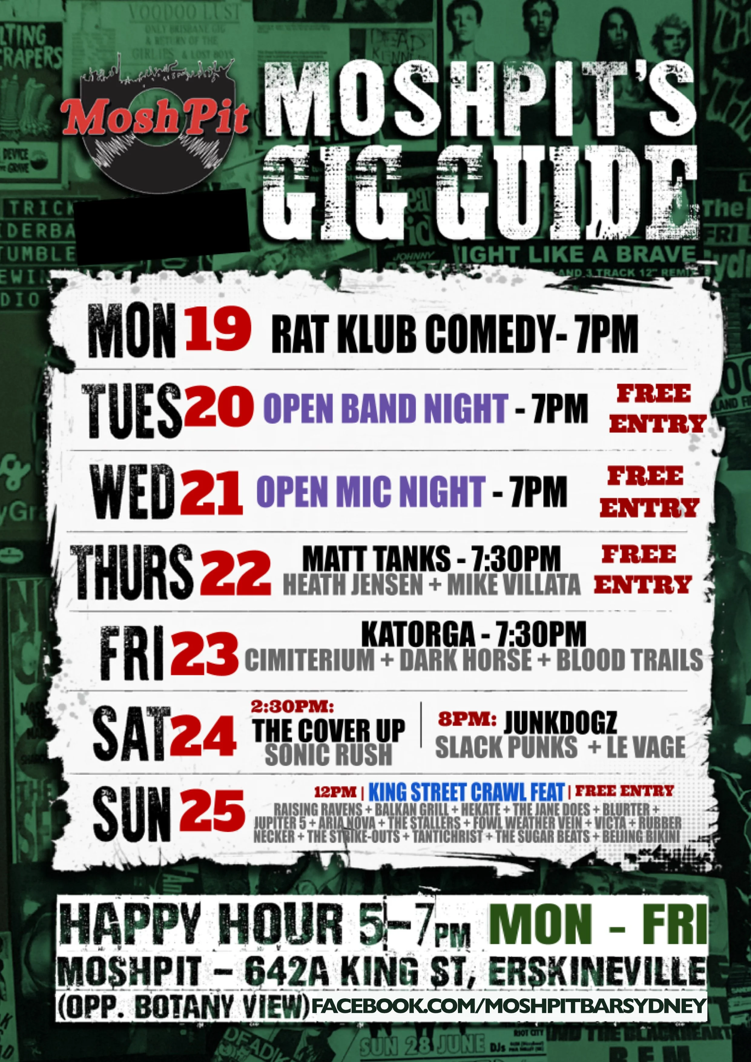 • Wed: Open Mic Night! Bookings email: openmic@moshpitbar.com.au